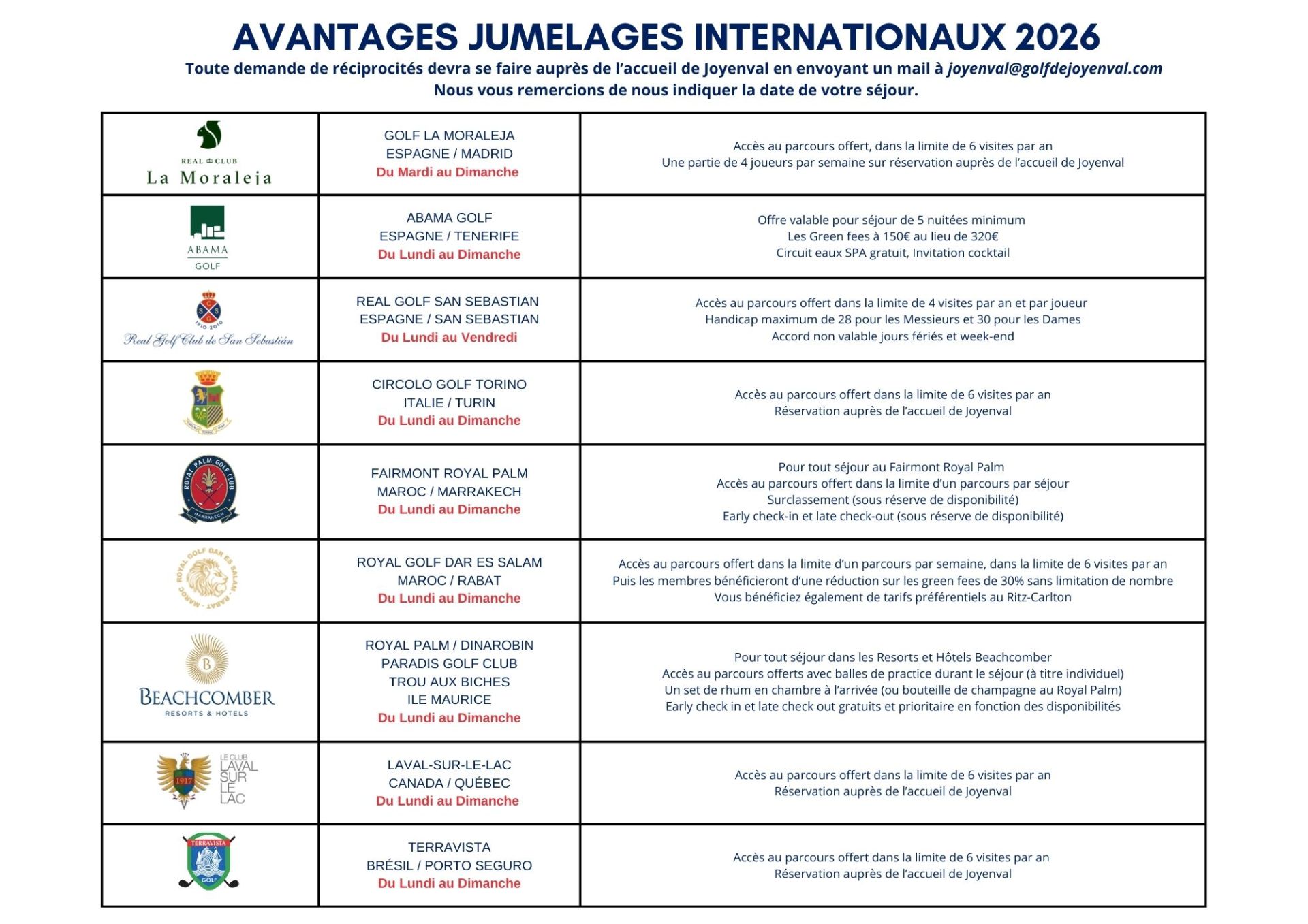 Joyenval offre à ses membres la possibilité de jouer gratuitement dans des clubs amis.