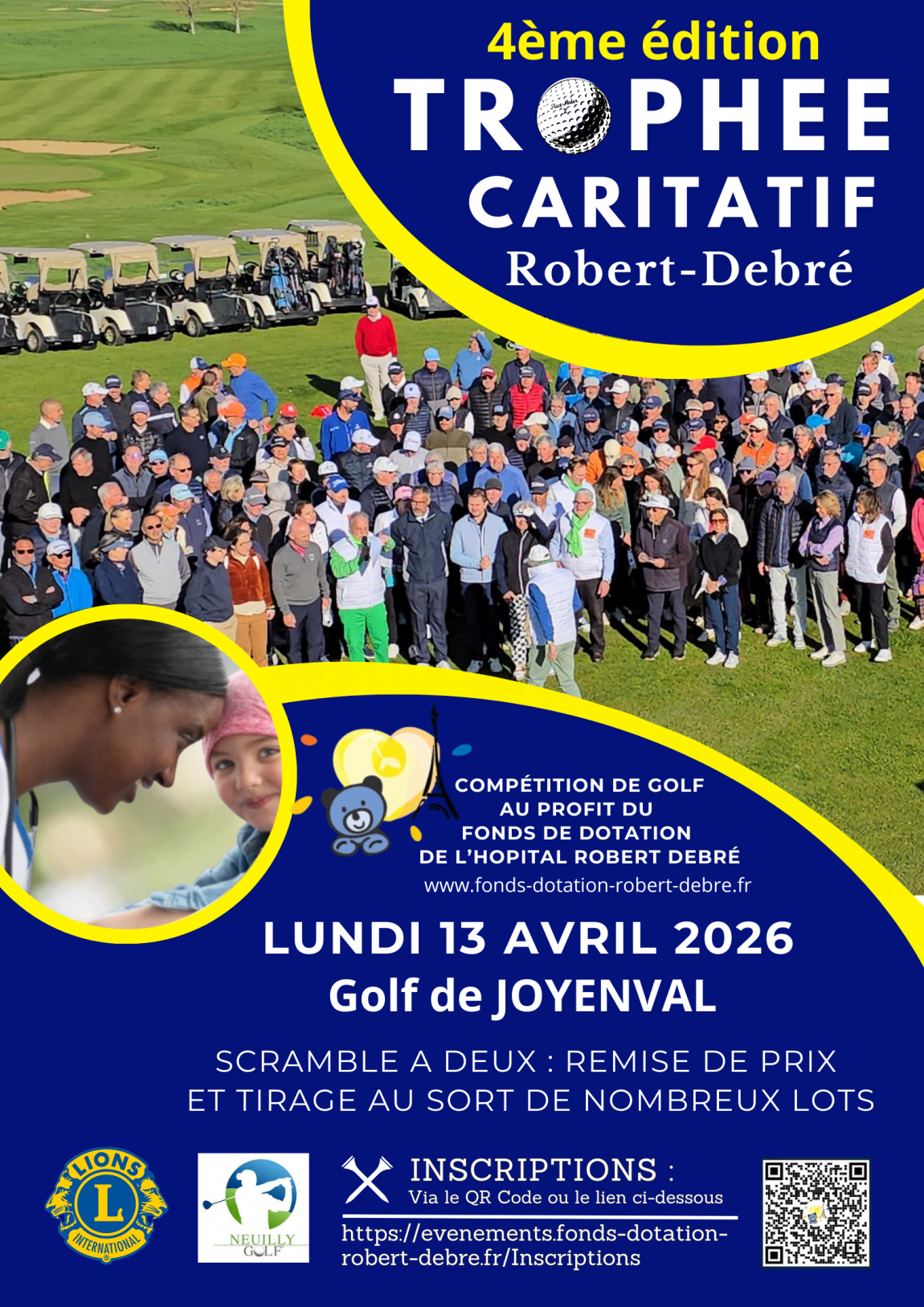 Il reste encore quelques places de disponibles pour l’édition 2026 du Trophée Caritatif Robert Debré, qui se tiendra le lundi 13 avril 2026 au Golf de Joyenval, au profit du Fond de Dotation de l’Hôpital Robert-Debré.